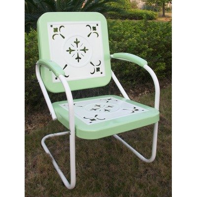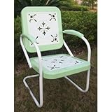 This retro outdoor chair is great for all of your outdoor needs. The seats and backrests are trimmed in a vibrant shade of vintage lime to give this set a little fun. The decorative cutout design makes this chair a very stylious and sophisticated look. The metal arms with lime colored metal capped armrest are a finishing touch to an outstanding chair. The metal is finished in a rich powder coated paint making it great for that special patio or outdoor area. Clean with a dry non abrasive cloth. Assembly required.